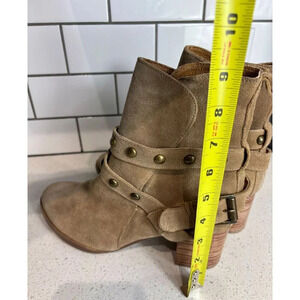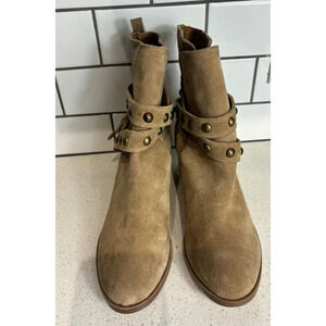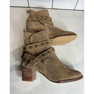 JEVA Designer Womens Suede Leather Studded Ankle Bootie Shoes Caramel Sz 10