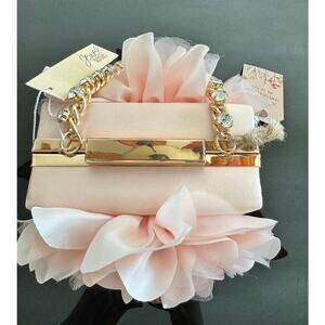 JEWEL BADGLEY MISCHKA Floral Evening Clutch Purse Blush Pink Gold Chain NWT