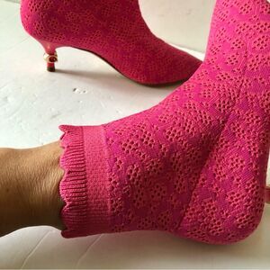 JEWEL BOOTIE COACH WOMEN'S SIZE 5.5 B KNIT UPPER PINK RUBBER OUTSOLE PULLON, CONE 2 1/5 HEEL. ANKLE BOOTS, PINTED TOE, MADE IN VIETMAN