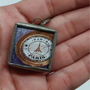 JEWEL KADE Silver 1 inch Square Purple Crystal Fleur de Lis Paris Clock Pendant