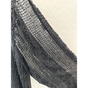 🆕 JEWEL QUEEN | Vintage Black 100% Silk Sequin Beaded Heavyweight Cardigan | XL