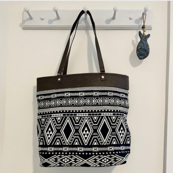 JEWELL by Thirty-One Black & White Woven Cotton Boho Weekend Aztec Shoulder Bag