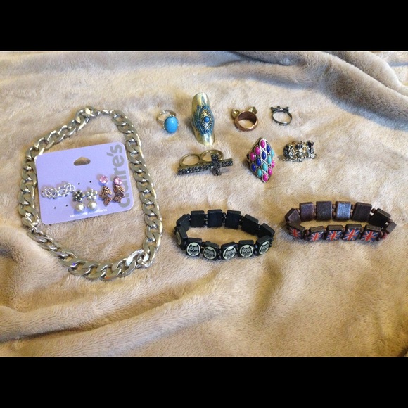 All Claire's except the pink and blue ring, which is from fashion bug. Can be separated.