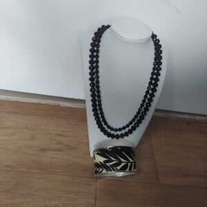 black necklace and black plant cuff. SAVE on shipping. Our jewelry is preloved and so they may have little ware.