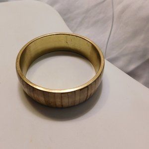The large bangle is tan/brown in color, inside around is gold-tone metal - has some wear/blemishes (scratches on the inside)