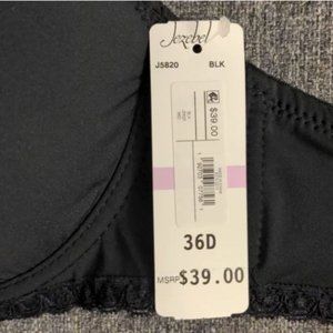 JEZEBEL BRA Women's Lace-Trim Underwire Contour Bra J5820 Black Size 36D NWT