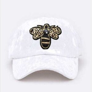 J.Elise Boutique Lavender Golden Bee Patch Distressed Velour Baseball Cap