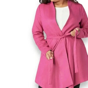 JF Asymmetrical Tie Coat is new with tags. Beautiful fushia color Aline coat with side pockets and a tulip hem. Great transitional piece for Spring or Fall.