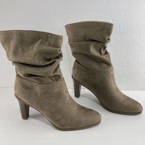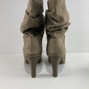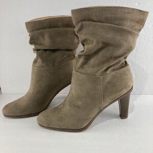 JF Bailee Taupe Faux Suede High Heeled Boots Women's Size 10 NWOB Pull On Party