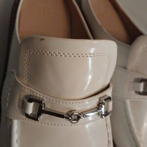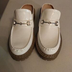 JF Flat Mule Slide Sz 10 Bright White Lug Sole Loafer Silver Buckle Bobbi Comfy