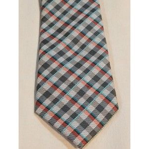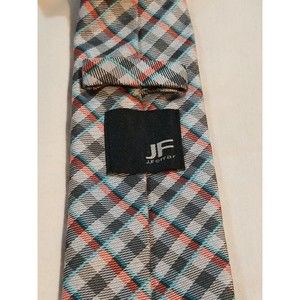 JF J. Ferrar Men's Necktie 100% Polyester Gray/Blue/Red Plaid Tie. Very good overall preowned condition no tears, stains and light wear noticed.