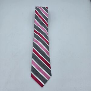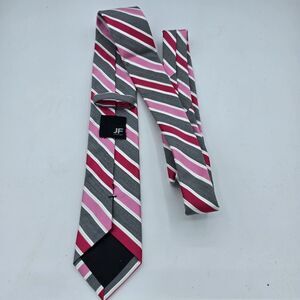 JF J. Ferrar Men's Polyester Tie Striped Necktie Pink And Grey 58 X 2.5 Inch