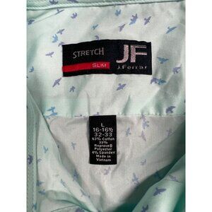 JF J.Ferrar Men's Slim Fit Stretch Dress Shirt L 16-16.5 32-33 Lt blue patterned
