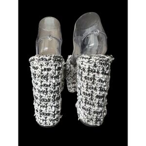 JF London Heather Throwback Heels Black & White Tweed Platform Shoes Women's 8.5