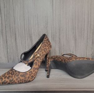 New Without Tags JF Women's Size 7.5 stiletto 4" heels, faux leopard print, pointy toe.