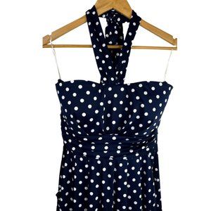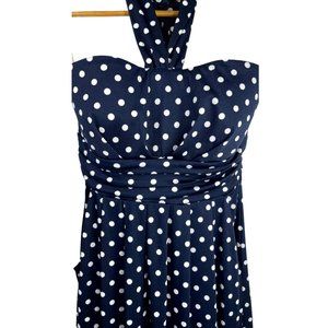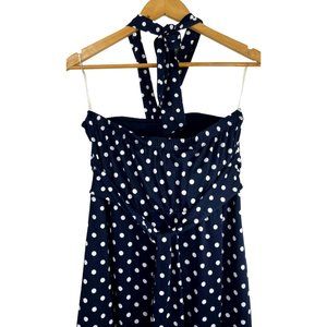 JFW Navy Blue And White Halter Polka Dot Dress Size: XL