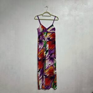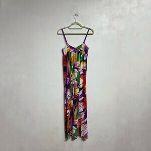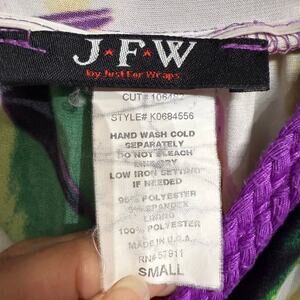 Small purple, white, black, pink, yellow and green dress by JFW in excellent preowned condition.