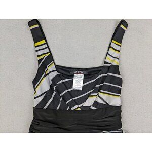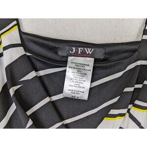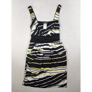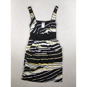 J.F.W. - WOMEN'S BLACK WHITE YELLOW STRIPED STRETCH KNIT DRESS - SIZE M