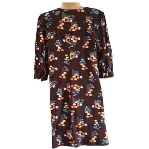 JFW Women's Retro Floral Puff Sleeve Dress - Size Medium -Brown Multicolor Print