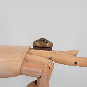 J.Fein Size 7 Boho Gilt Bronze Large High Profile Wooden Statement Ring