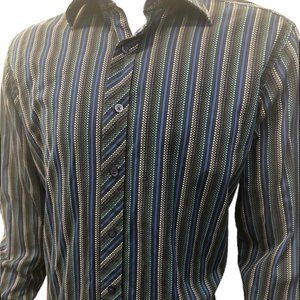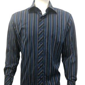 Very Nice J.Ferrar Modern Fit Long Sleeve Shirt Blue Stripe 80/2 Mercerized Button Down