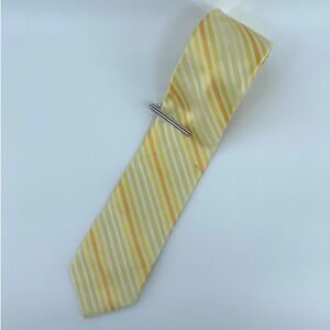 Keywords: J.Ferrar, mens tie, necktie, yellow tie, striped tie, tie clip, business tie, casual tie, mens accessories, formal wear, professional attire, polyester tie, mens fashion, wedding tie, gift for him