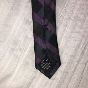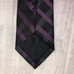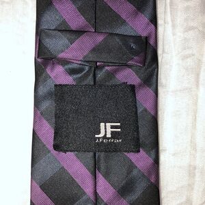 J. Ferrar Purple Black Diagonal Stripes Polyester Tie