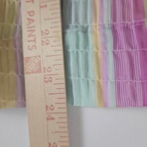 This retro-inspired blouse combines playful pastel stripes with a semi-sheer design, making it a must-have for any fashion-forward woman.