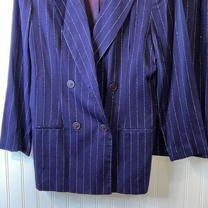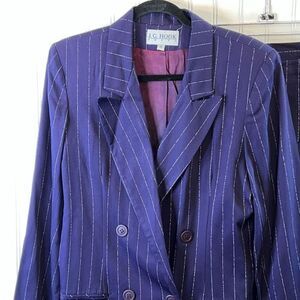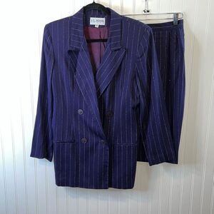J.G. HOOK VTG 2 Piece Suit Skit & Blazer Jacket Women Size 8 Blue Pin Striped