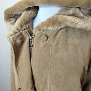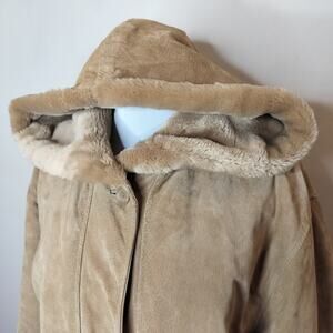 JG Hook Leather Suede Hooded Coat Faux Fur Lining