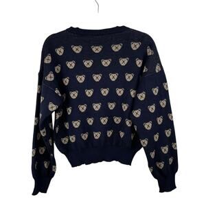 JG Hook Navy Blue Pullover Teddy Bear Print Wool Knit Long Sleeve Sweater Large