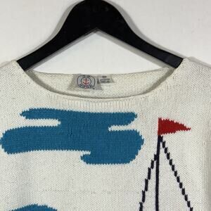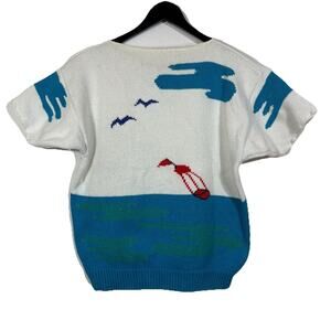 J.G. Hook Sailboat Sweater Short Sleeve Cotton Nautical Sailing Medium Vintage