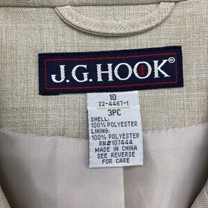 Experience timeless elegance with the J.G. Hook Skirt Suit, designed in a classic beige hue and tailored for a perfect fit. Crafted from durable woven polyester, it features side elastic for added comfort, making it ideal for any career-driven wardrobe.