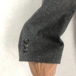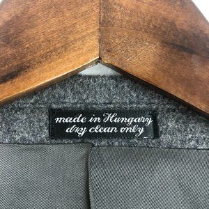 Vintage men's gray camel hair blend sport coa,t blazer, suit jacket. Button front, collared notch lapel, long sleeves with button cuffs. Front pocket, back vent, lined.
