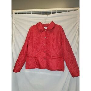 JG Hook Womens Red Lightweight Jacket Size XL Rose Pattern Snap Closure