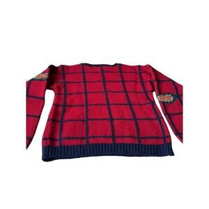 J.G. Hook Wool Paisley Check Sweater - 100% Hand Knit Wool - Striped - size PM