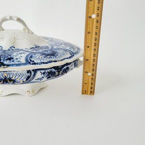 J&G Meakin Flow Blue Covered Vegetable Dish, Embossed w/Gold Accents, England