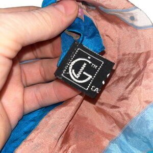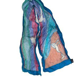 JG Silks Vintage Painted birds blues scarf 10x55 RARE Art to Wear