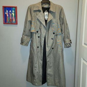Vintage fully lined small houndstooth print. Double breast 2 exterior pockets caped back and belted