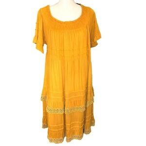 J. Gee mustard colored layer dress with embroidered design on hem