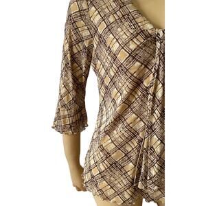 JH COLLECTIBLES Petites Womens Size PXL Plaid 100% Nylon 3/4 Sleeve Shirt Top