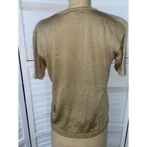 Vintage 80s JH Collectables Gold Glitter Knit Short Sleeve Pullover Sweater Blouse Large