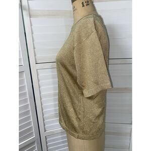 JH Collectables Gold Glitter Knit Short Sleeve Pullover Sweater Blouse Large