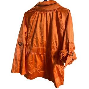 JH Collectible Satin Orange Jacket Womens Sz L Full Zip Roll Sleeve Hidden Hood