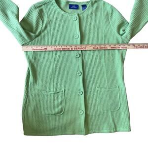 JH Collectibles Cardigan Jacket Size XL Lime Green Waffle Knit Button Up Pockets