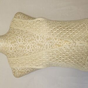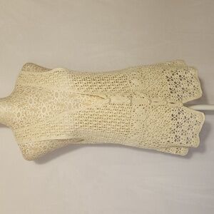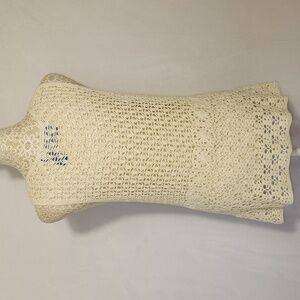 JH Collectibles Petites Oatmeal Open Weave Crochet Boho Button Front Tank SZ LP