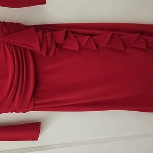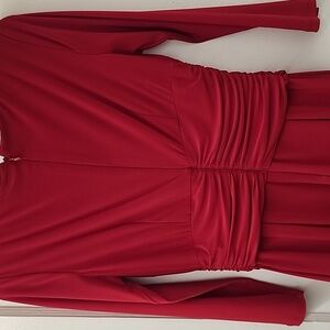 JH Collectibles Red Dress 3/4 sleeves, ruffle and ruching. size 8 EUC