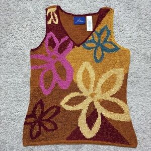 JH Collectibles Sweater Vest - Vintage - Knit - Floral - Cottagecore - Y2K Style - Flowers - Funky -