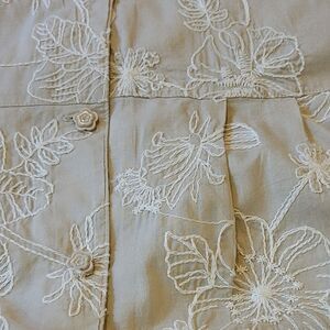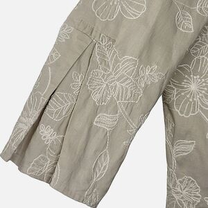 JH Collectibles Toupe Floral Embroidered 3/4 Sleeve Button Down Blouse Size L