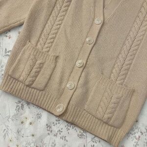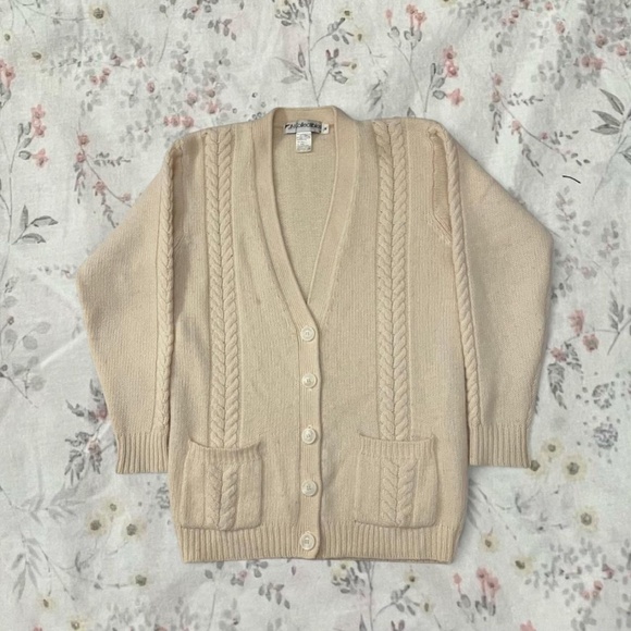 vintage 80s cable knit cream super soft lambs wool angora lightweight cardigan